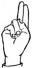 На ћирилици написано МИЛОШ УЛЕМЕК састоји се из 11 слова [?]. Исписано ћириличном једноручном азбуком за глувонеме: